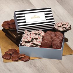 Peppermint Bark & Pecan Clusters in Gift Box with Stripes Sleeve